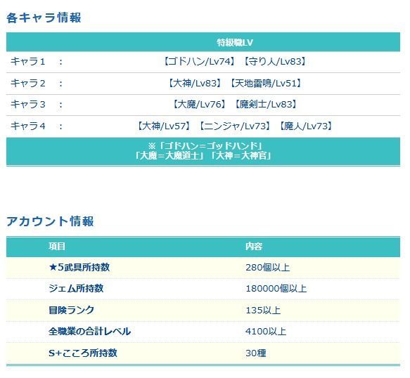 ※冒険ランクなども一部ぼかして記載しています。