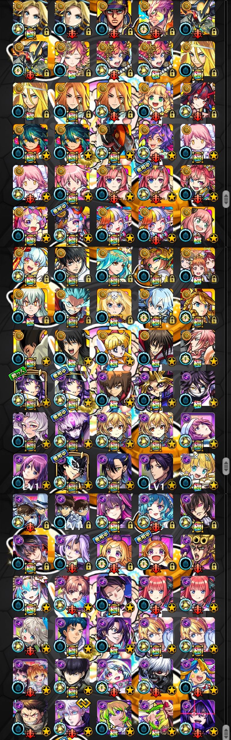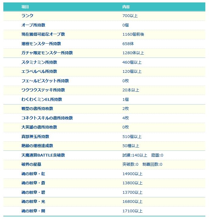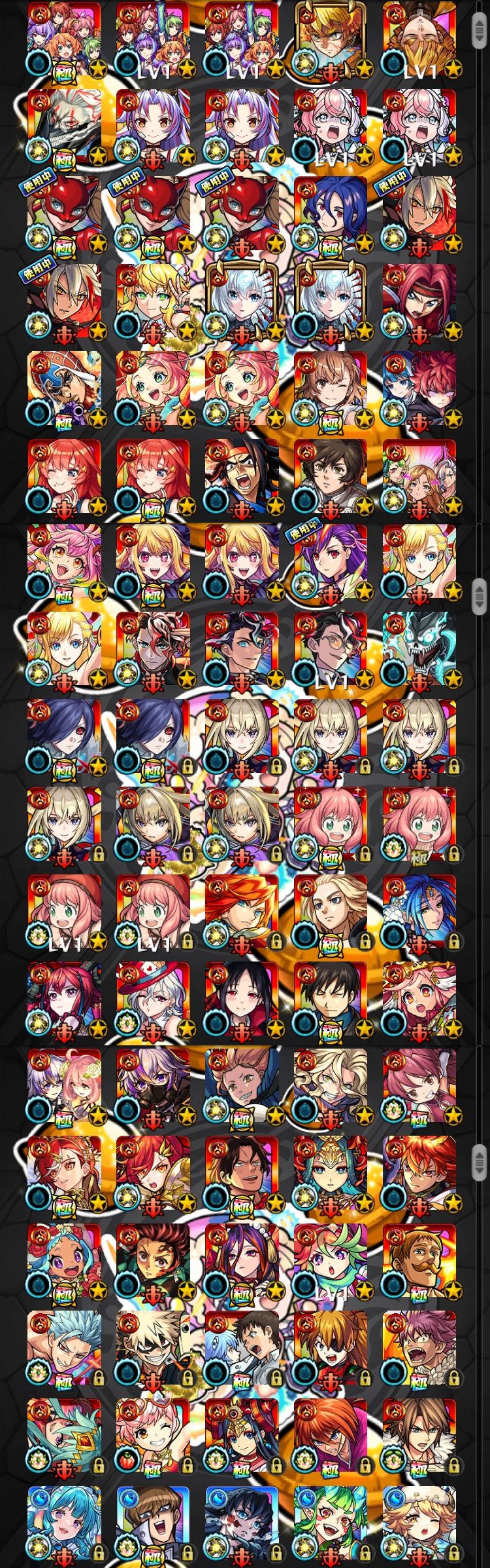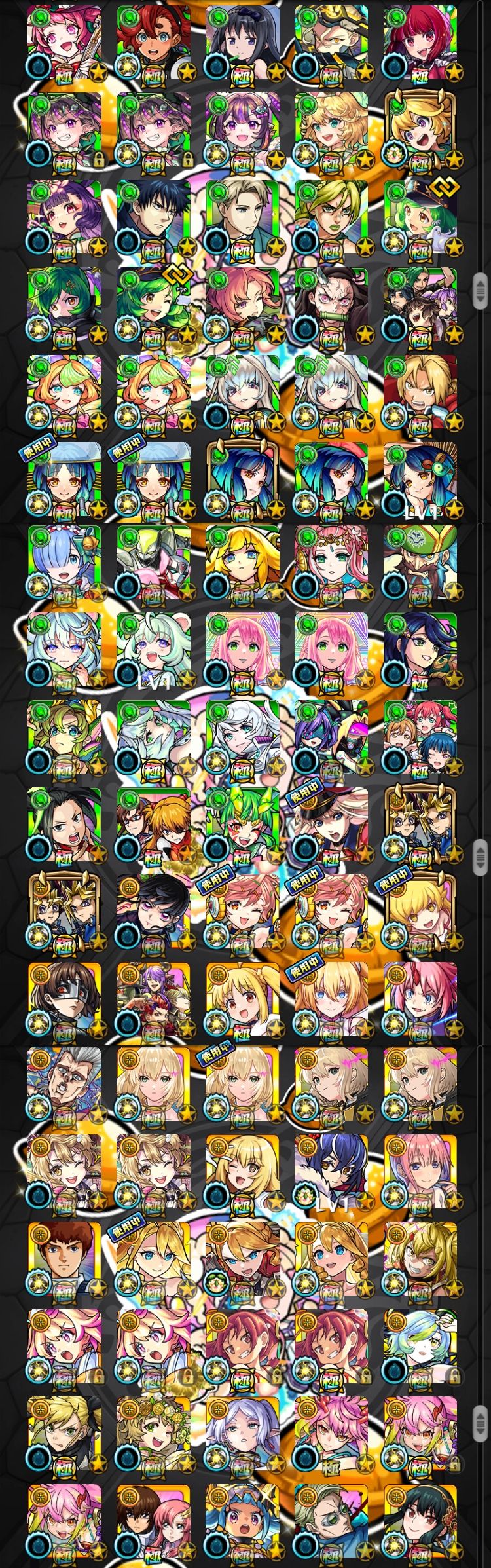 アカウント特定防止といった観点から、主なモンスターを抜粋して記載させていただいております。