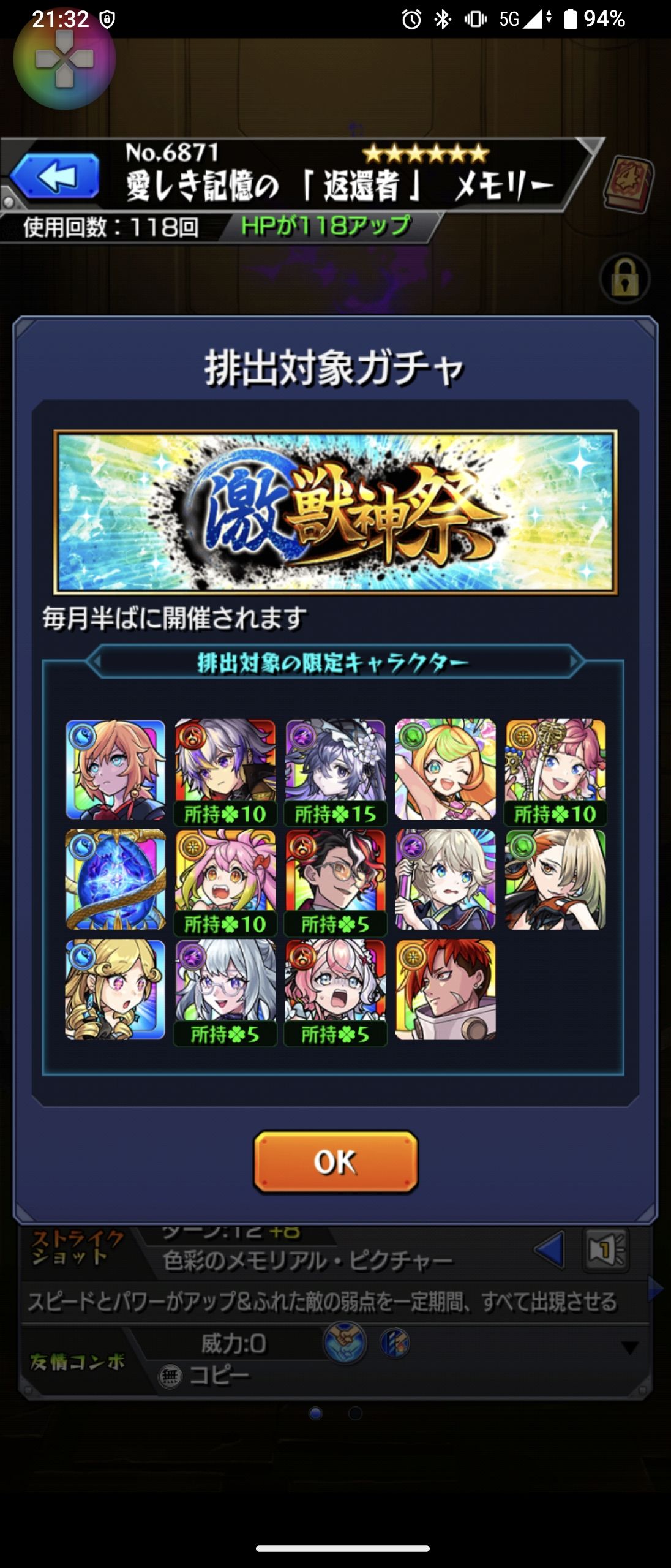 コラボキャラはジョーカー、オカルン、不死川など多数所持しています。