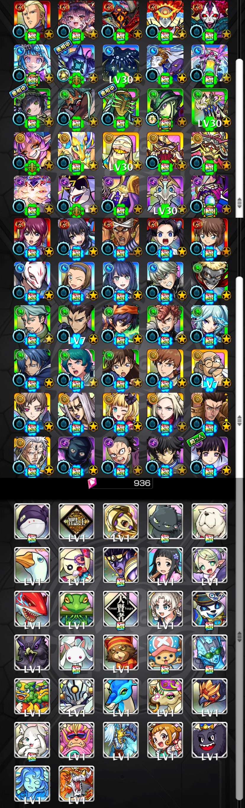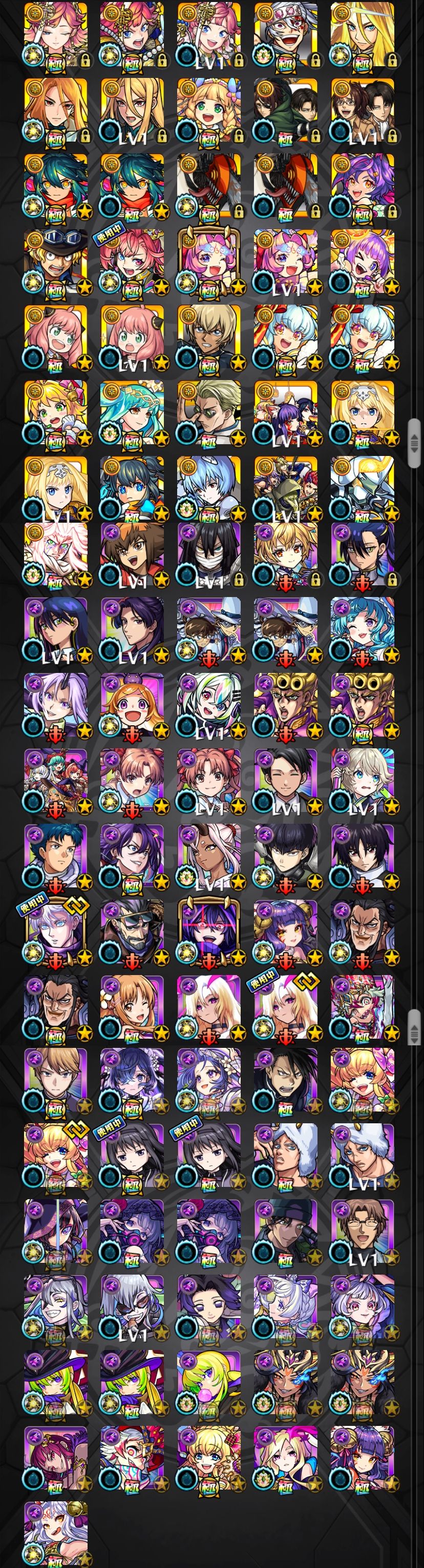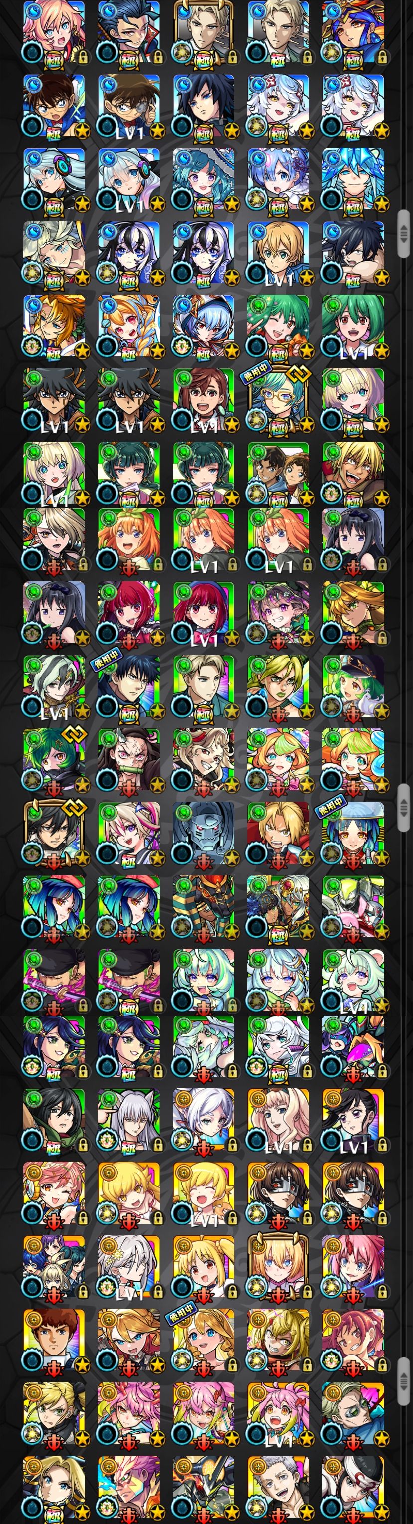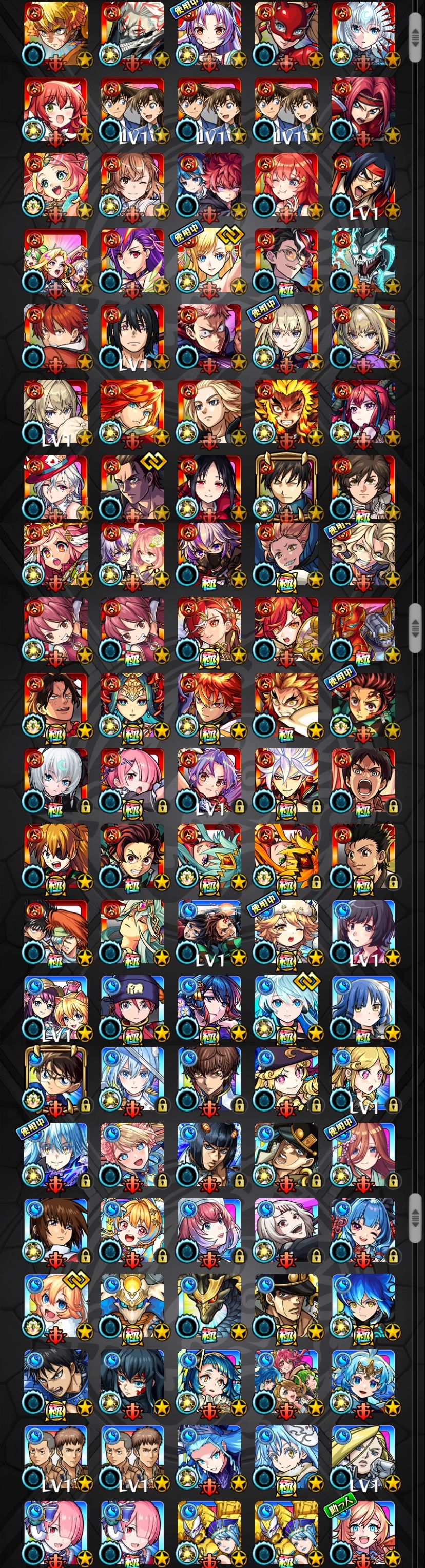 アカウント特定防止といった観点から、主なモンスターを抜粋して記載させていただいております。