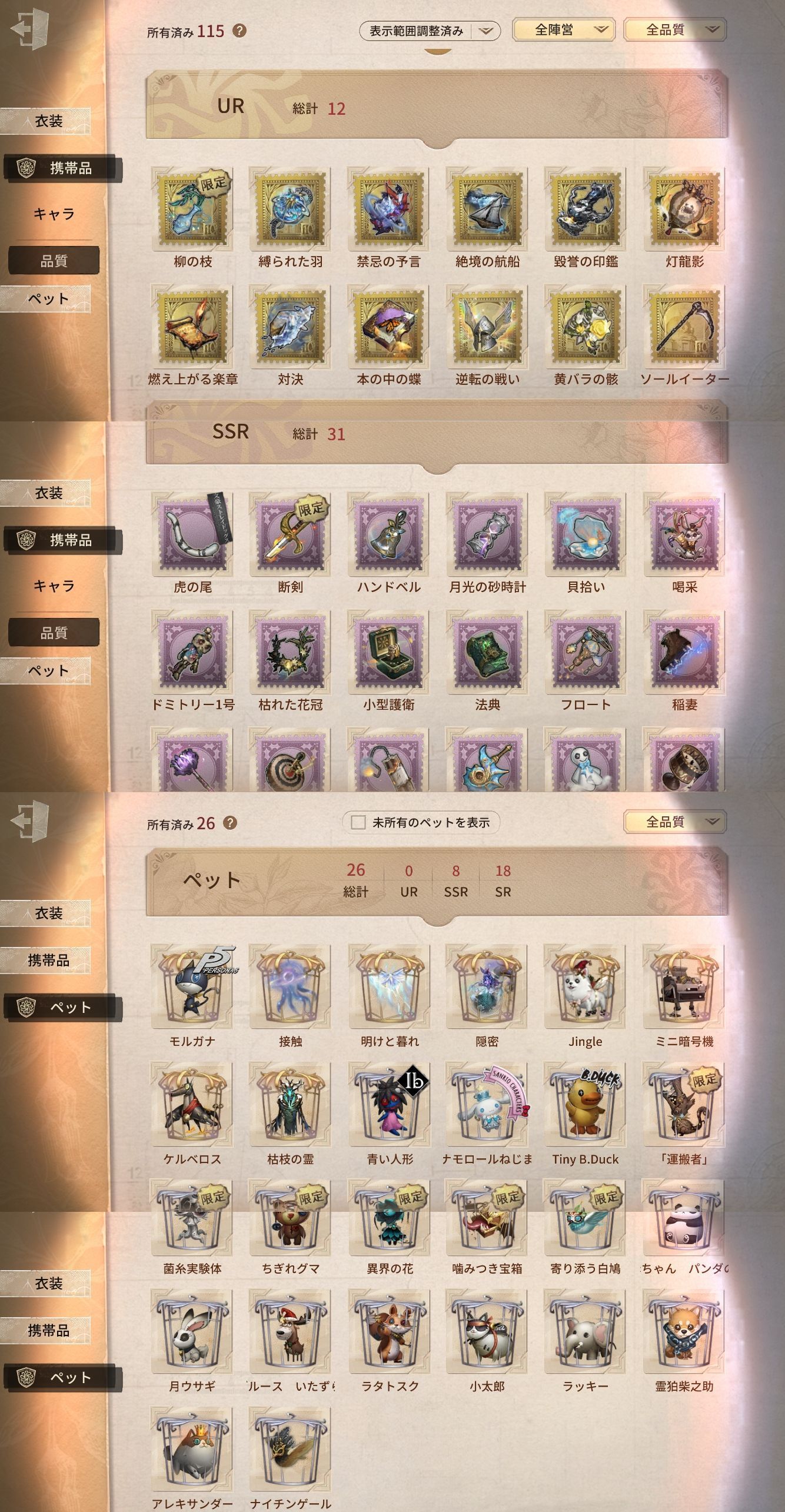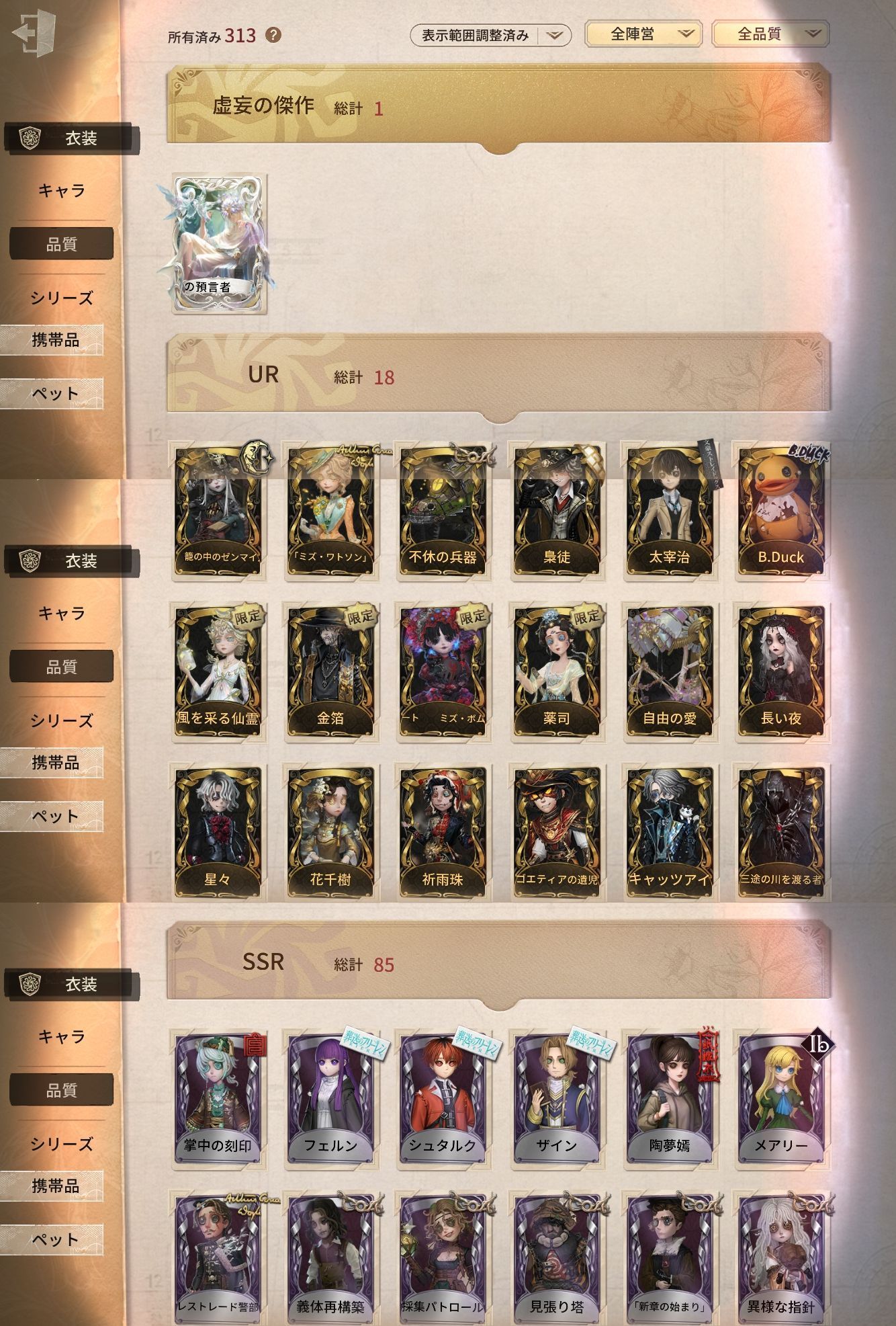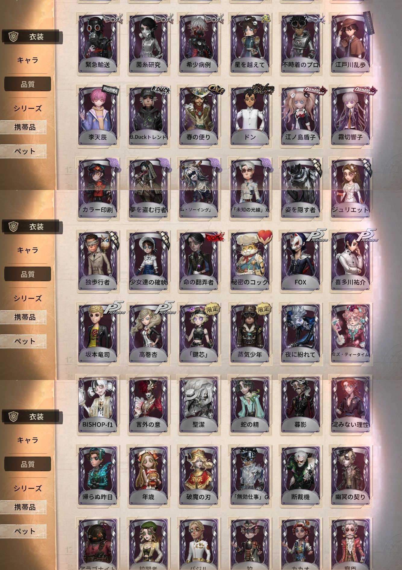 アカウント特定防止といった観点から、主な衣装を抜粋して記載させていただいております。