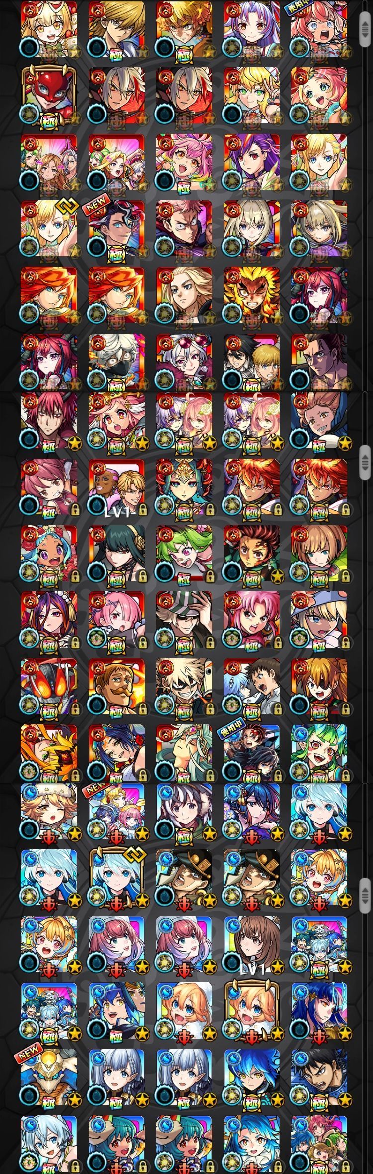 アカウント特定防止といった観点から、主なモンスターを抜粋して記載させていただいております。
