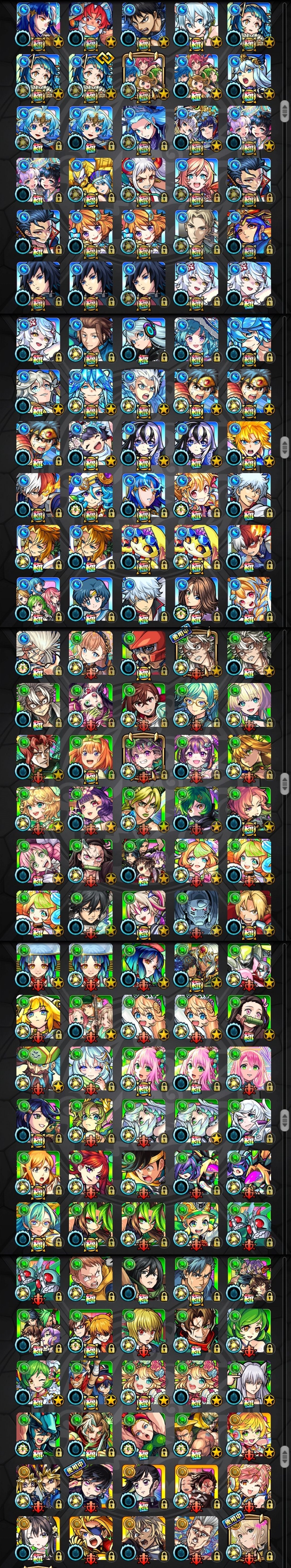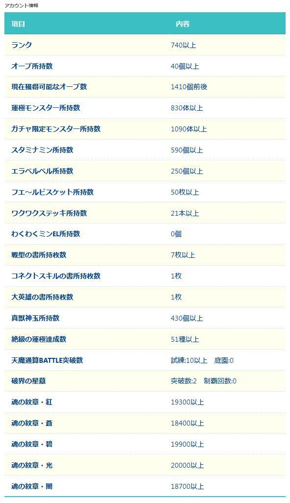 アカウント特定防止といった観点から、主なモンスターを抜粋して記載させていただいております。