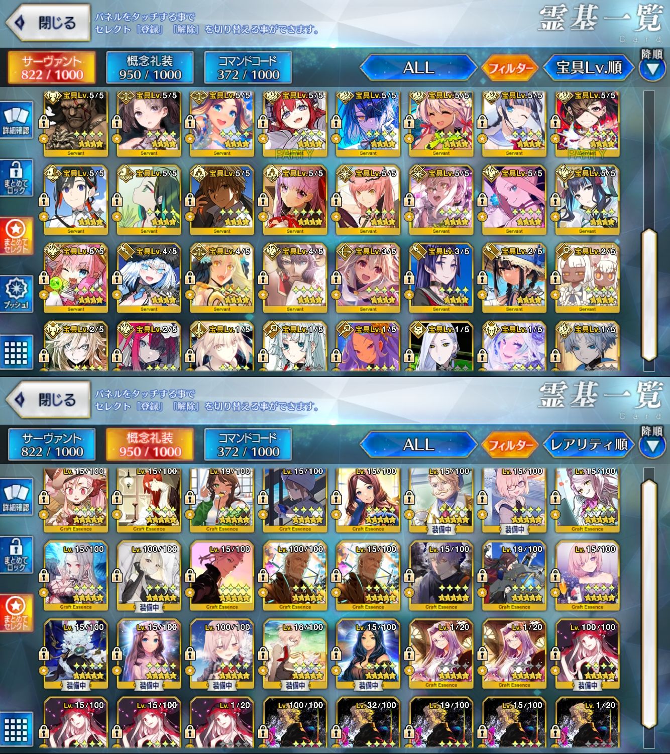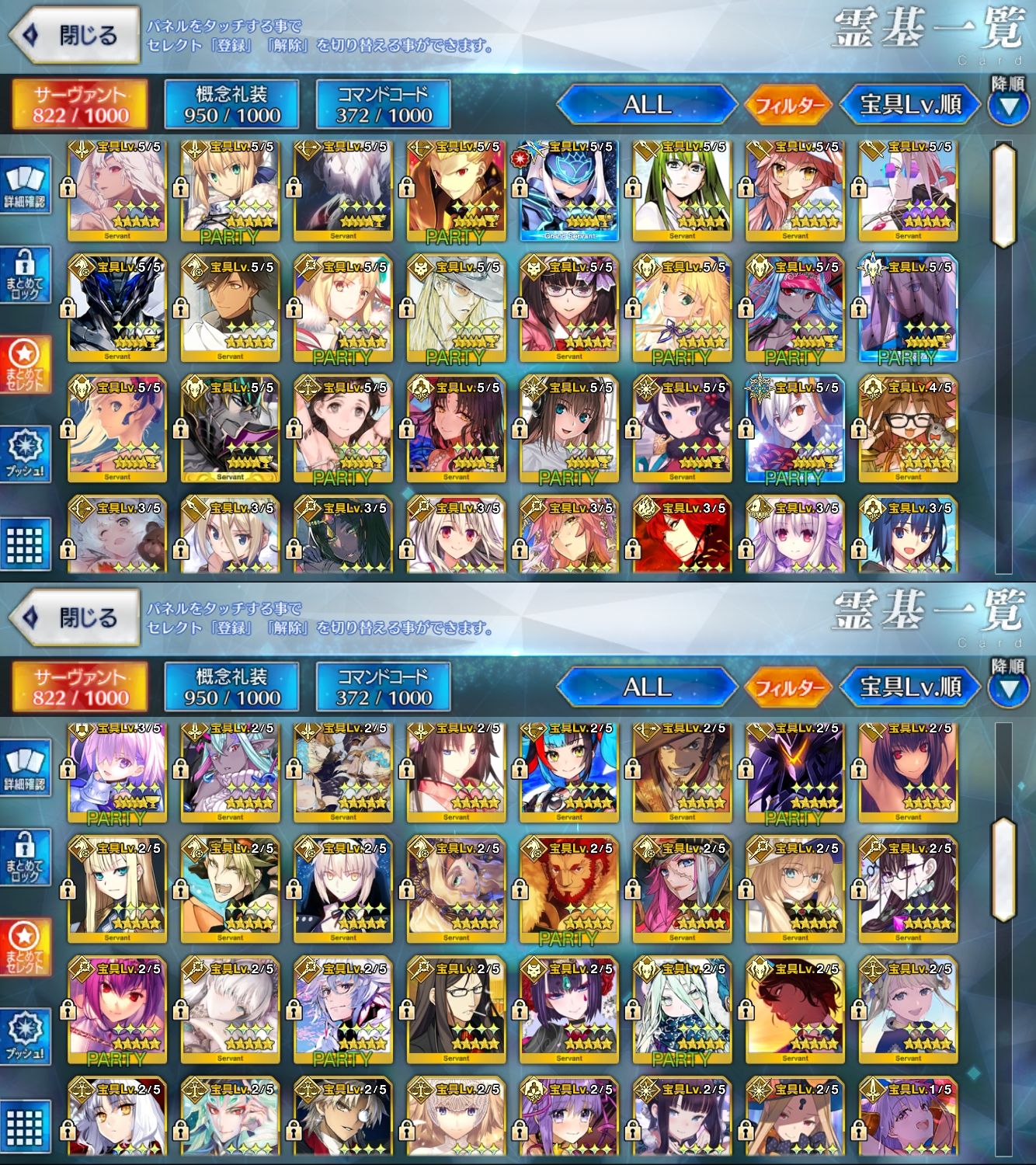 重複分は宝具強化に使用しているため、累計入手数=★5サーヴァントの宝具レベル合計値となります。