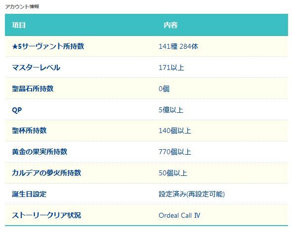 アカウント特定防止といった観点から主なサーヴァントを抜粋して掲載しております。