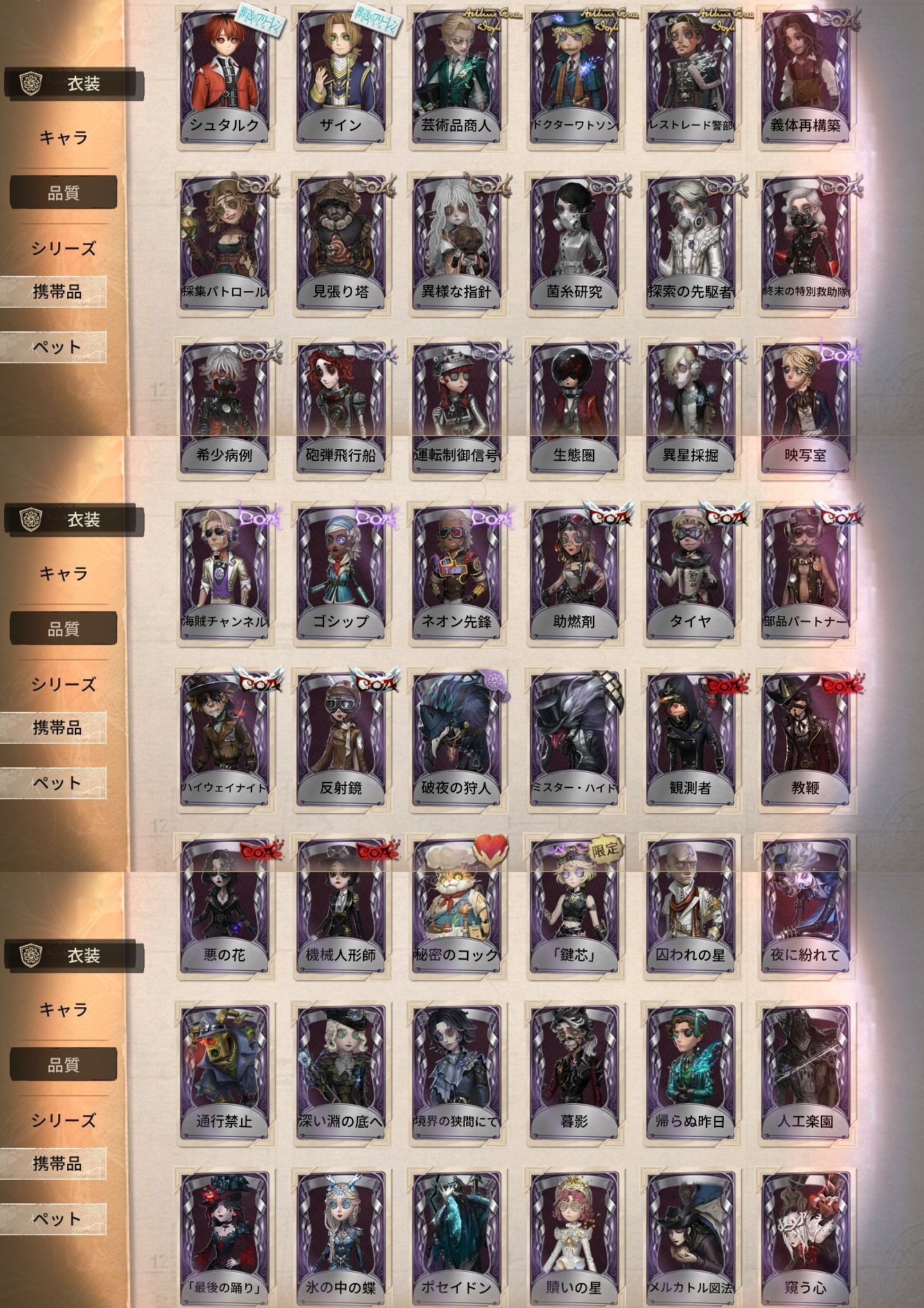 アカウント特定防止といった観点から、主な衣装を抜粋して記載させていただいております。