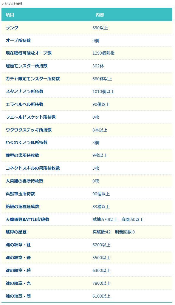 アカウント特定防止といった観点から、主なモンスターを抜粋して記載させていただいております。