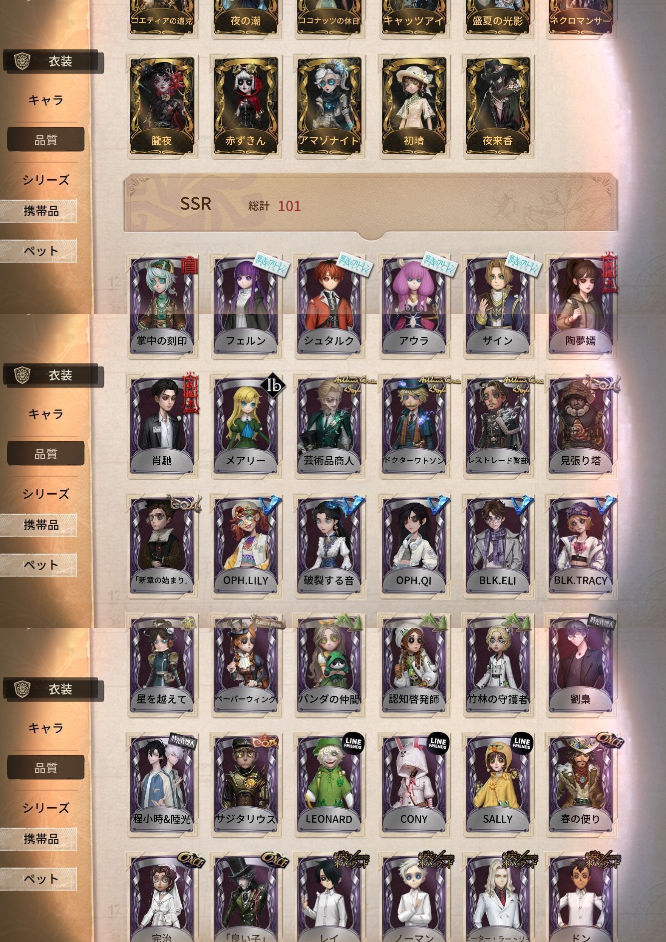 アカウント特定防止といった観点から、主な衣装を抜粋して記載させていただいております。