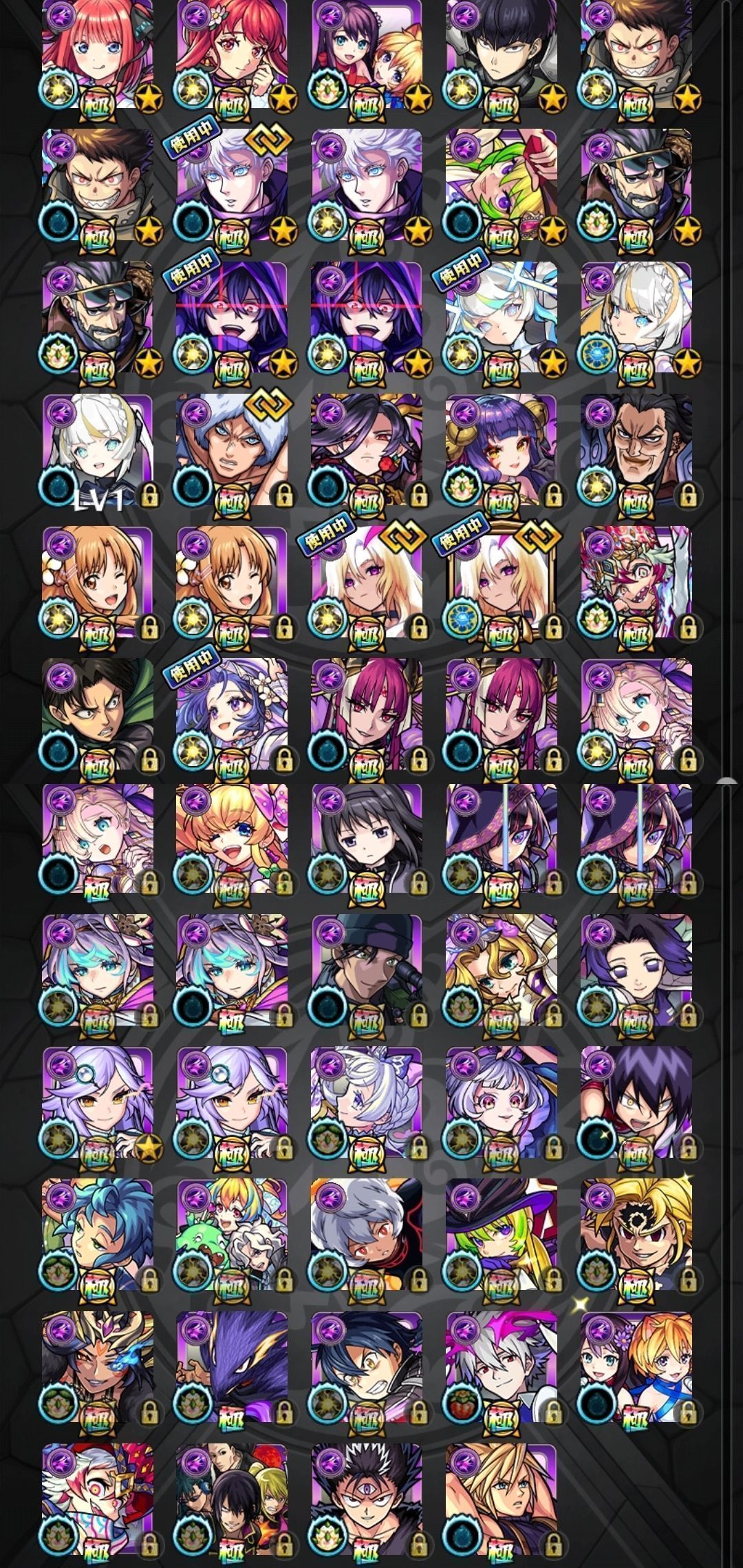 アカウント特定防止といった観点から、主なモンスターを抜粋して記載させていただいております。
