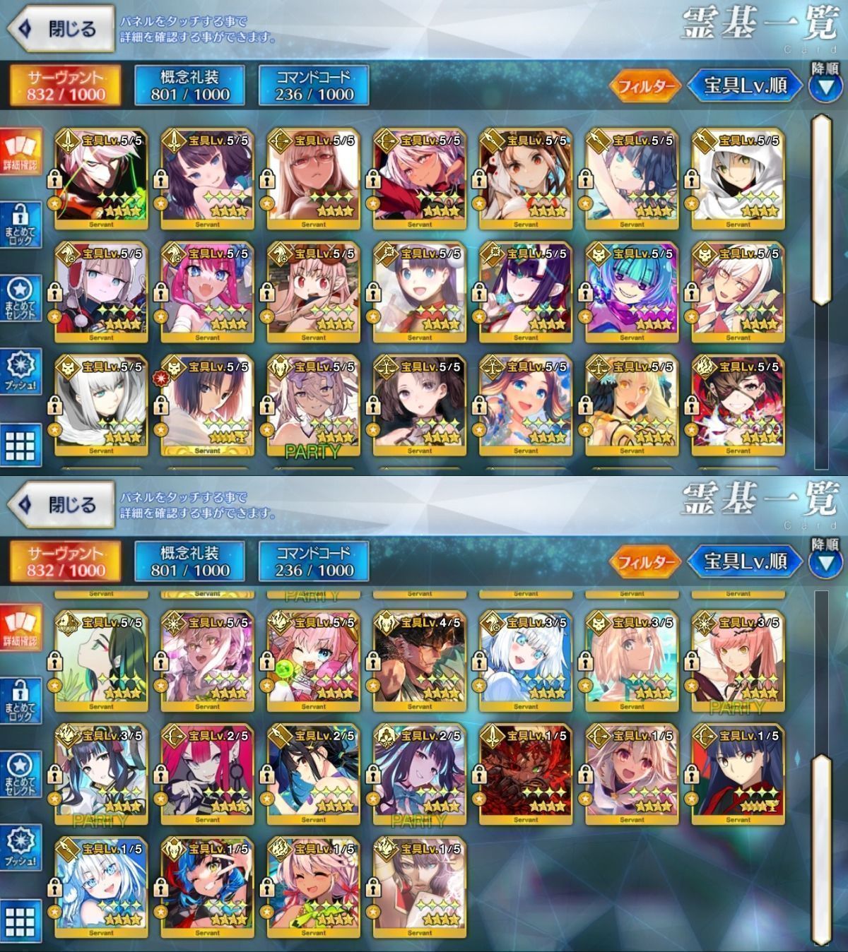 重複分は宝具強化に使用しているため、累計入手数=★5サーヴァントの宝具レベル合計値となります。